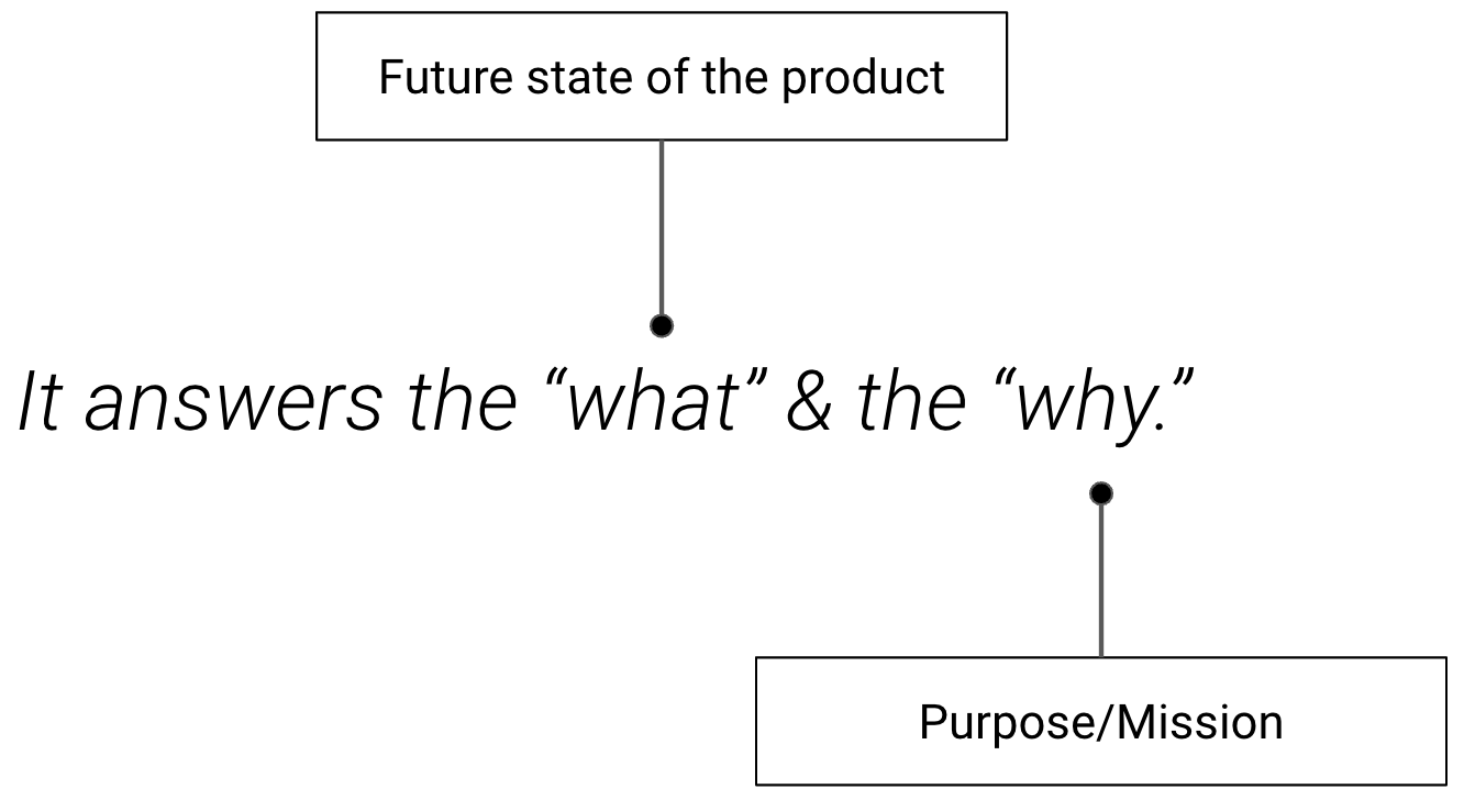 One sentence can’t fully clarify the future state of a product, nor does it answer the “why.“