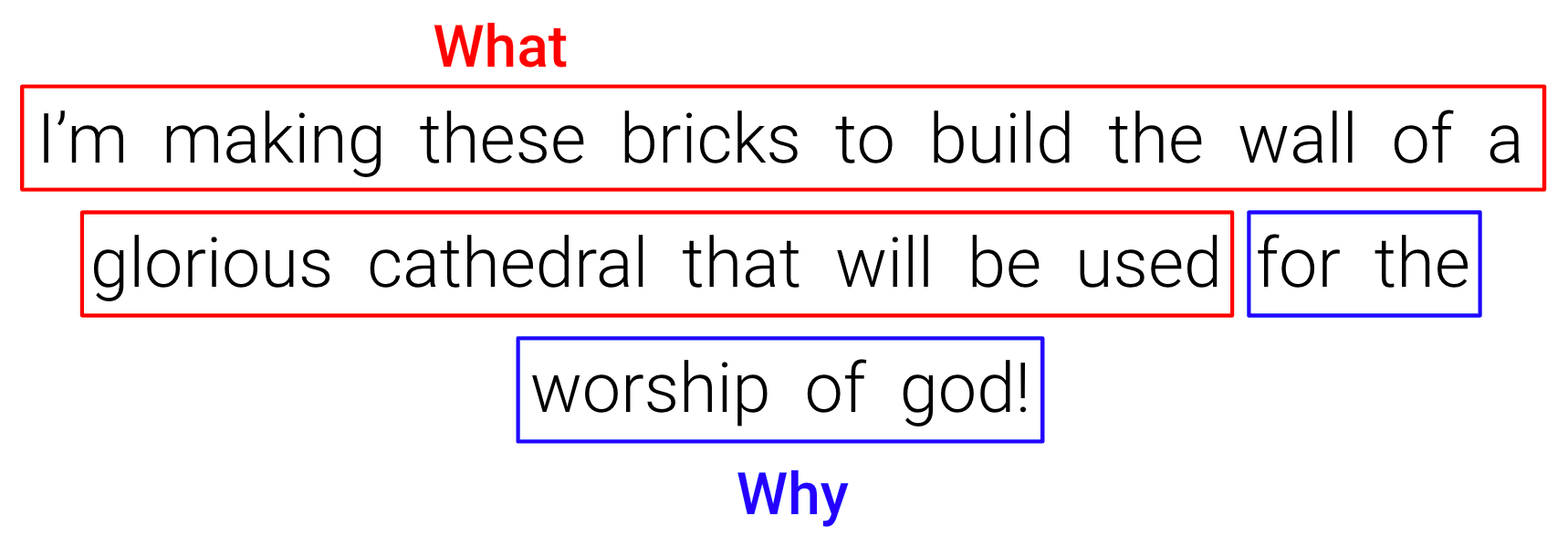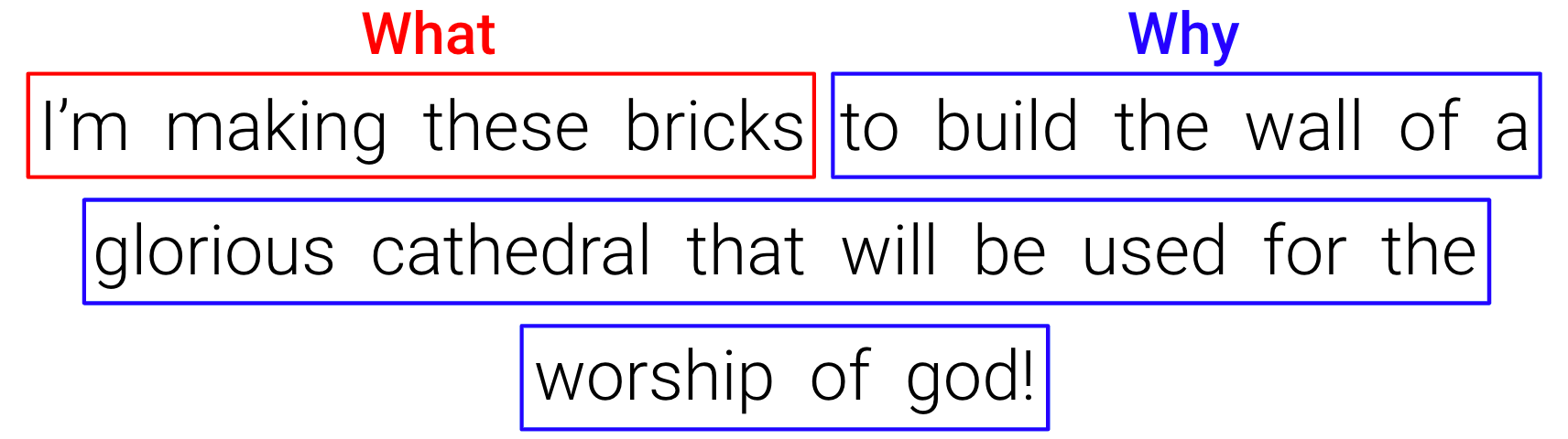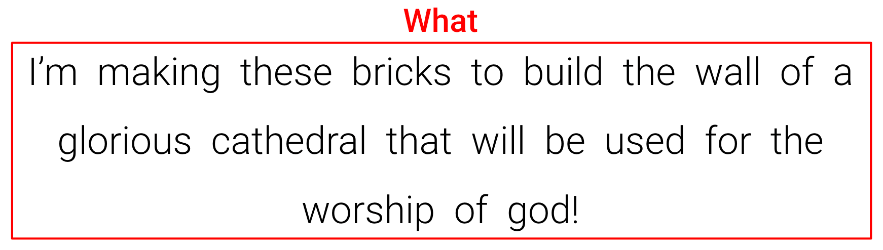 “I’m making these bricks to build the wall of a glorious cathedral that will be used for the worship of god!”