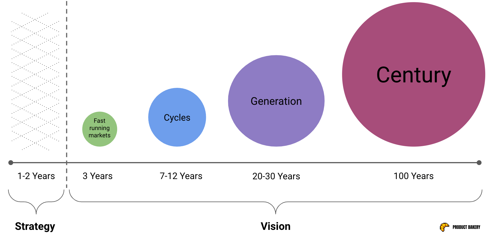 Considering product-market fit is given, you should sit down as a team and work out the product vision, align it, and communicate it with the whole company. Once you’ve collected feedback from your stakeholders you move on to the strategy breakdown. Depending on your company size and leadership alignment you can parallelize the vision definition with the strategy breakdown.